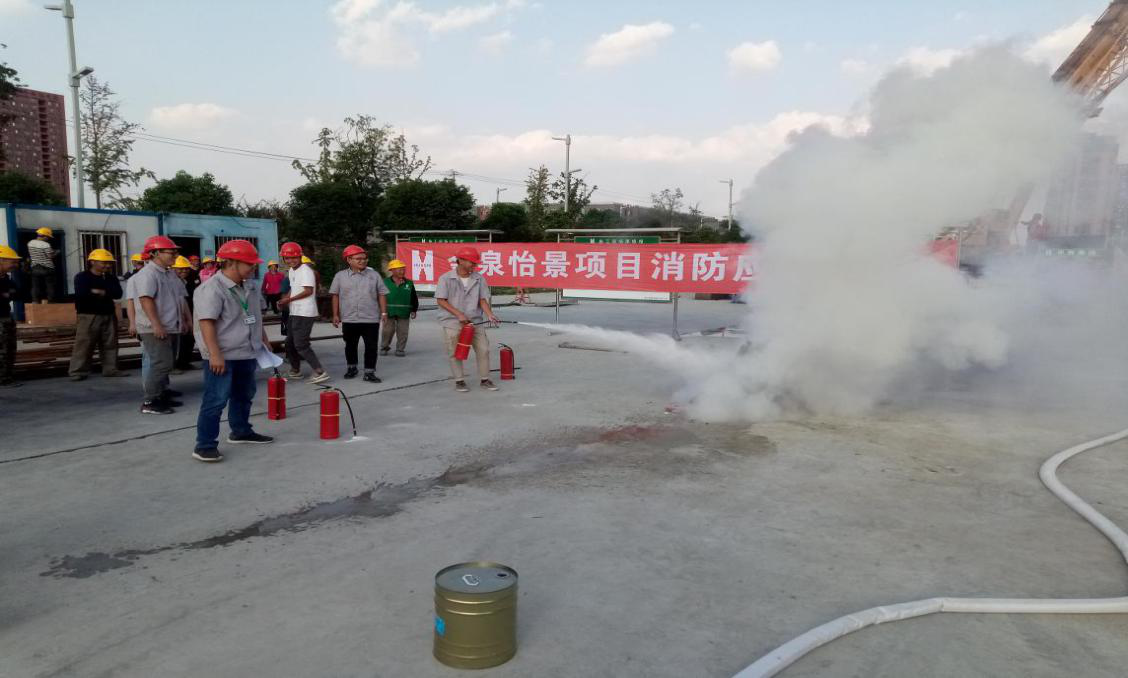 精心组织,加强应急处置能力。为切实加强项目部安全管理工作,提升火灾应急救援水平,金禾盛公司在金泉怡景项目现场顺利开展了消防应急演练。此次演练主要分为施工现场发生火灾时人员疏散演习和常见的消防灭火演练。通过此次演练,增强了项目部工作人员的消防安全意识,强化了对突发火情的应急处置能力,进一步提高了施工现场的防火自救能力,为今后的成功抢险打下了坚实的基础。