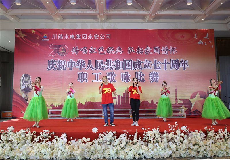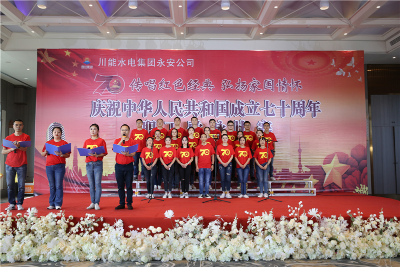 10月11日,川能水电集团永安公司庆祝中华人民共和国成立七十周年职工歌咏比赛在三台麗枫酒店举行。公司在家领导班子成员、各分工会主席、评委及职工演员共计350余人参加活动。