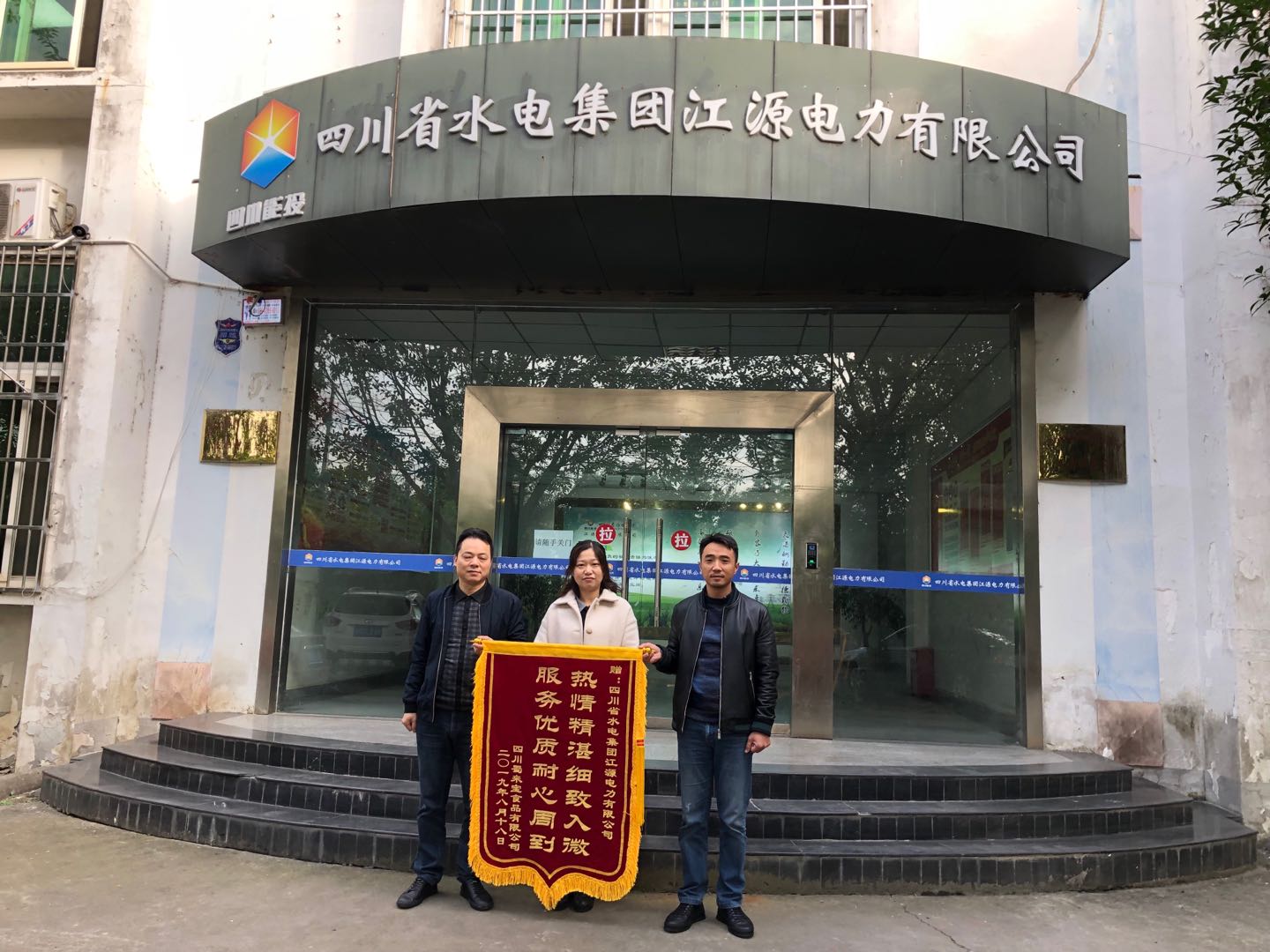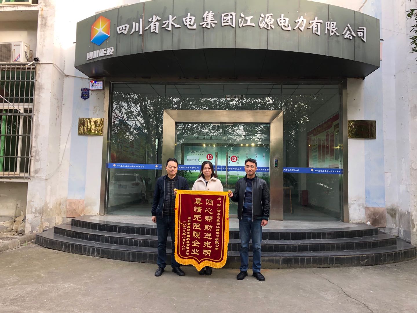 近日,四川蜀来宝食品有限公司、四川新雅轩生物科技有限公司工作人员将两面分别写着“热情精湛细致入微、服务优质耐心周到”和“倾心帮助送光明、真情无限暖企业”的锦旗送到川能水电集团江源公司,对江源公司为企业用户提供用电保障的优质服务表示感谢!