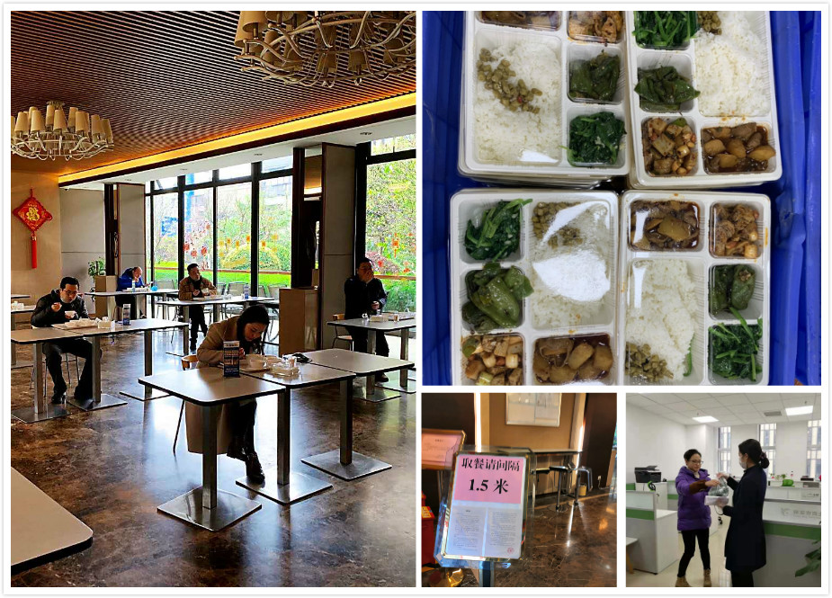 为切实保障就餐安全,让业主们吃上“放心饭”,在复工前夕,百事吉公司便多次就工作餐服务方案进行研究讨论,并因地制宜推出打包外带、配送到“位”服务,菜品经严格测温后,打包成盒运输至业主工位进行发放,进一步降低交叉感染风险;日均送餐量近1000人次。同时,基于部分业主堂食需求,重新布局餐位,在取餐区设置一米间隔提示,并通过错峰就餐、一人一桌用餐等方式,实现分流、分散用餐,切实筑牢安全防线。