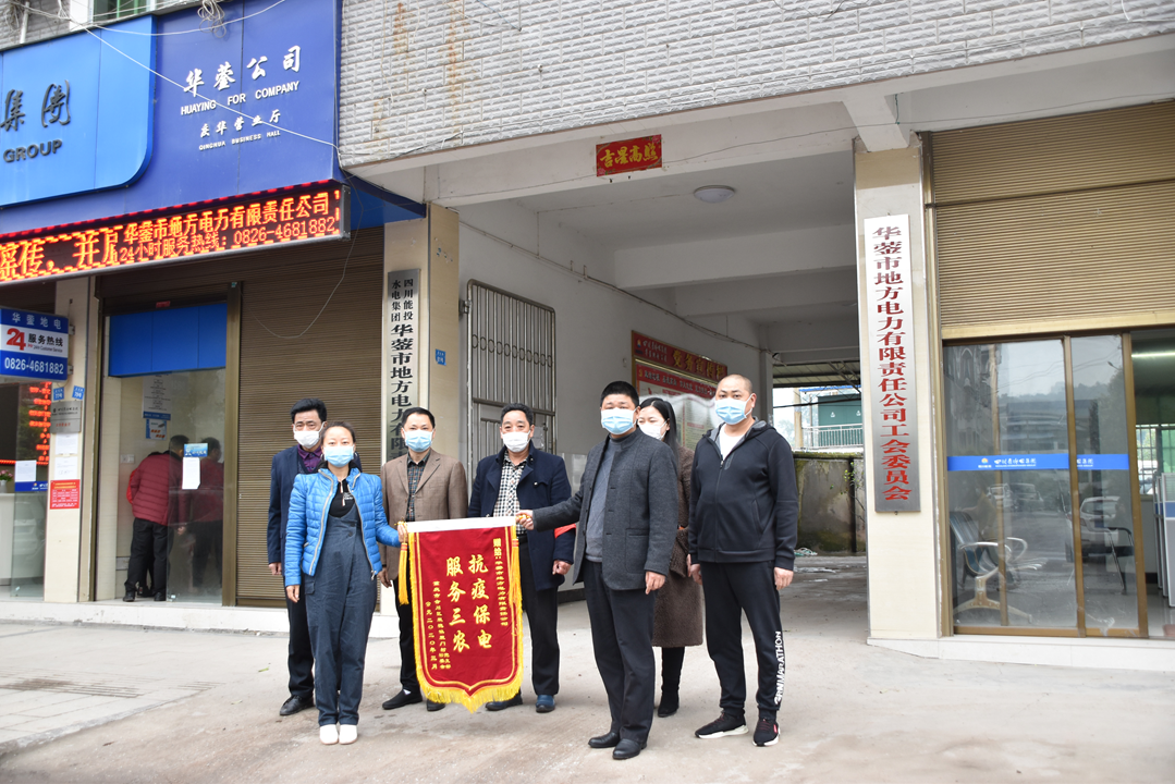 3月11日上午,重庆市合川区双槐镇双门村书记夏银生、主任孟术平两人将一面写着“抗疫保电、服务三农”字样的锦旗,送到了四川能投水电集团华蓥公司主要负责人手中,以此方式感谢华蓥公司工作人员在疫情期间对双门村的关心和帮助。