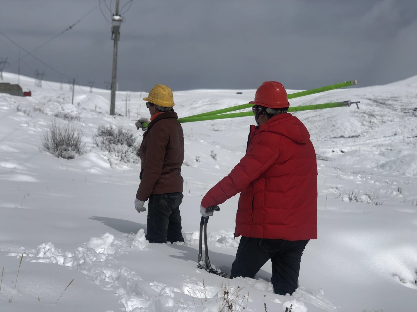 灾情发生以后,德格公司立即启动应急预案,迅速组织应急抢险工作组赶赴受灾地区开展抢险工作,各供电所全体职工团结一致,奋力投入到抢险工作中去。由于降雪量大,道路覆冰车辆无法通行,有的地方积雪甚至厚达60厘米,抗灾抢险工作异常艰难。抢险队员们在没过膝盖的雪地中,携带抢险器具和干粮,艰难步行前往受灾地区进行线路设备抢险,确保第一时间恢复供电。