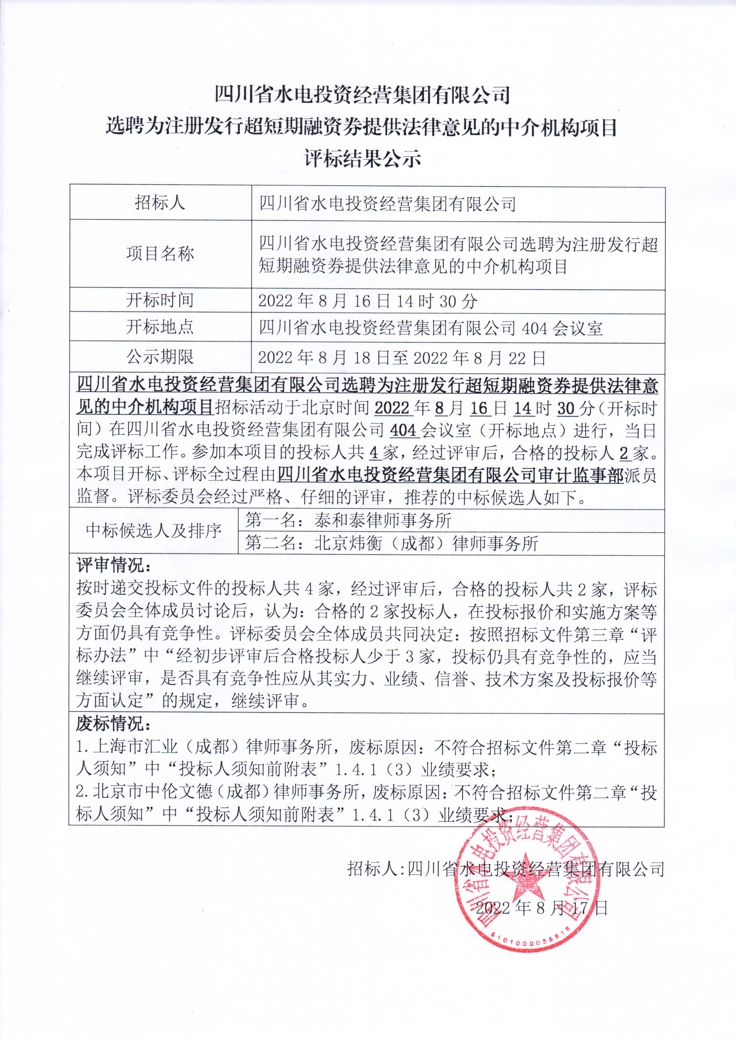 上一条:四川省水电投资经营集团有限公司代理购电价格公告(2022 年 8 月 26 日-2022 年 9 月 25 日)
