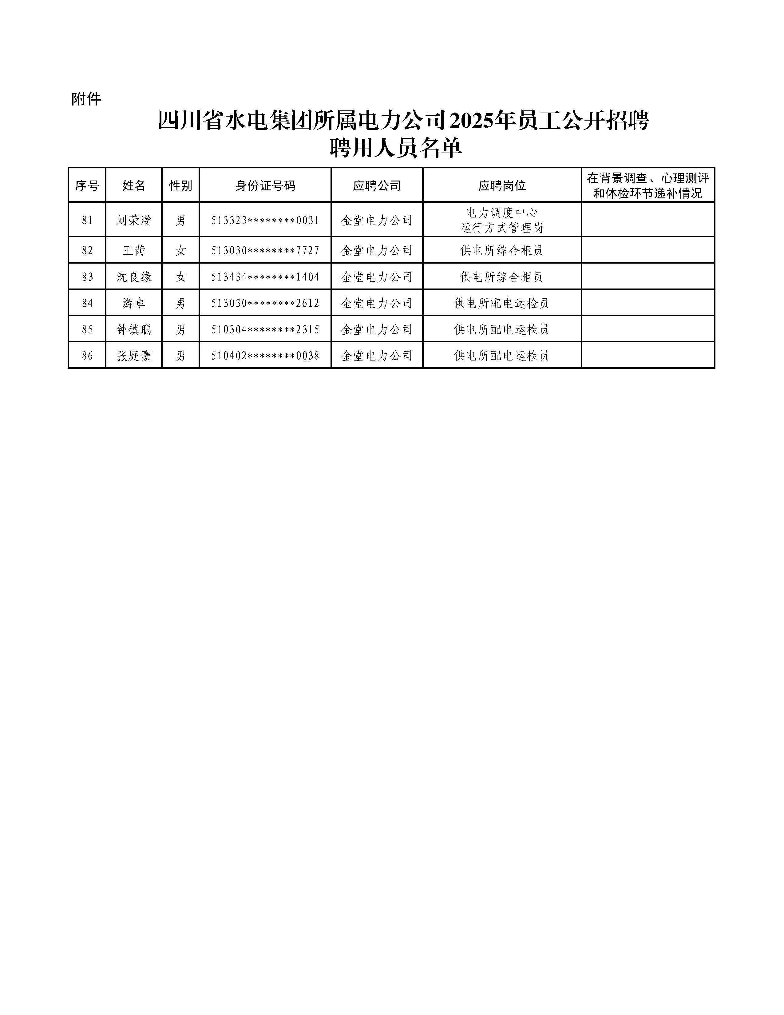 附件:四川省水电集团所属电力公司2025年员工公开招聘聘用人员名单